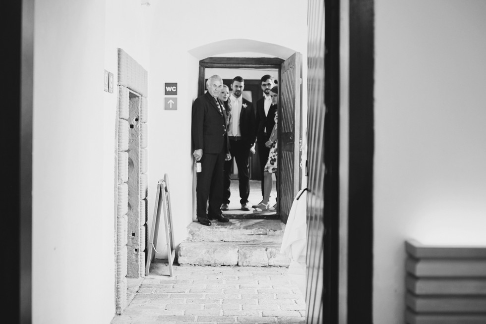 Společnost nevěsty Nikoly jsem si užívala už od brzkých ranních hodin. Přípravy probíhaly u rodičů v rodinném bytě v nedaleké vesničce. U domu se nakonec sešla celá široká rodina a společně, jak už to tak bývá, se odjíždělo směrem k zámecké kapli ve Svijanech.